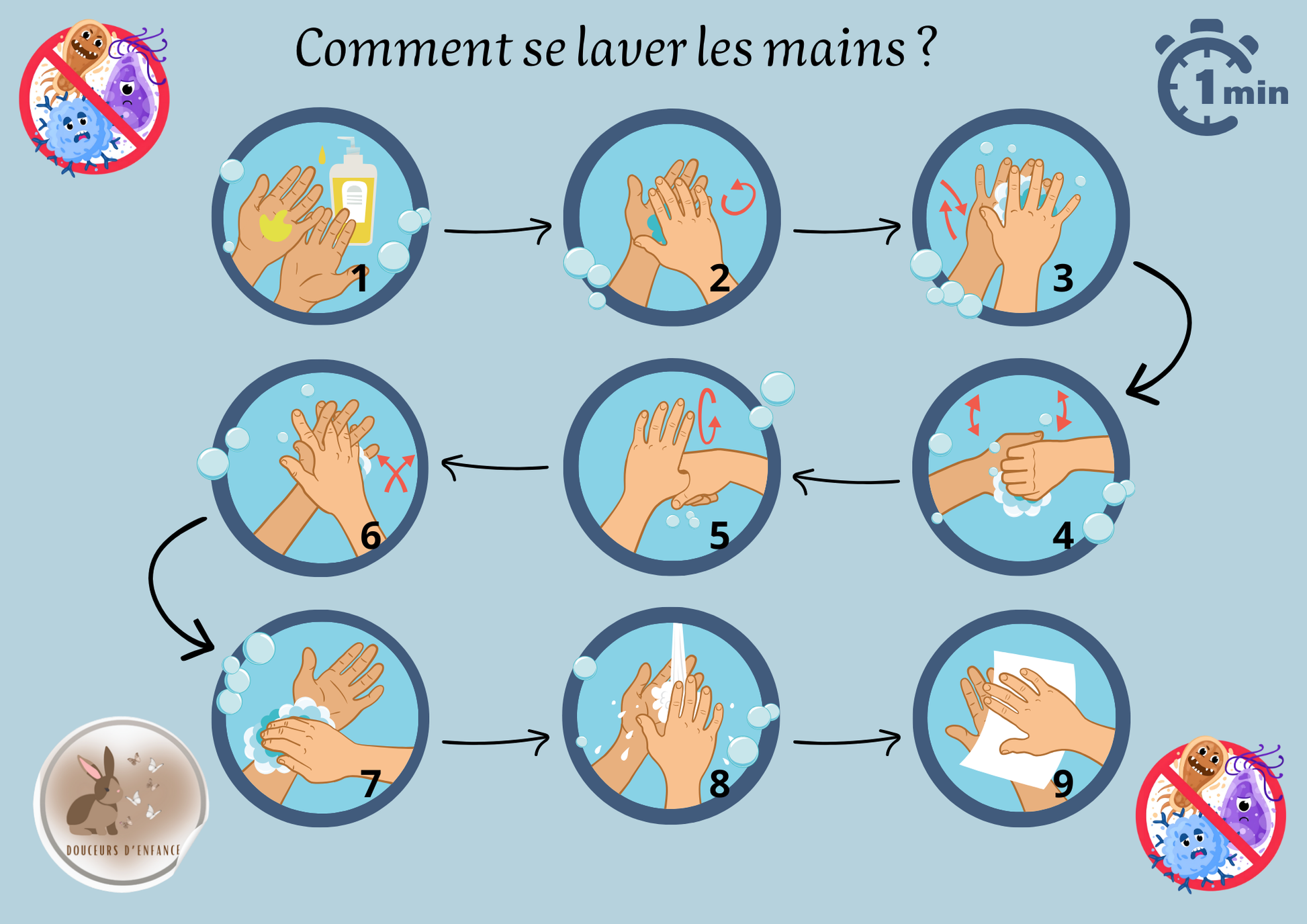 2 Un support Permettant de lui apprendre les étapes pour se laver les mains.